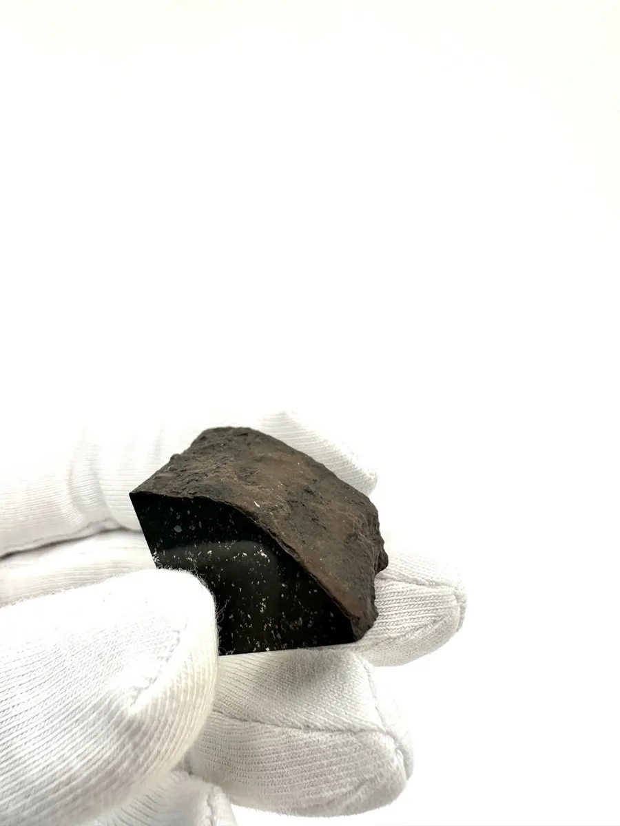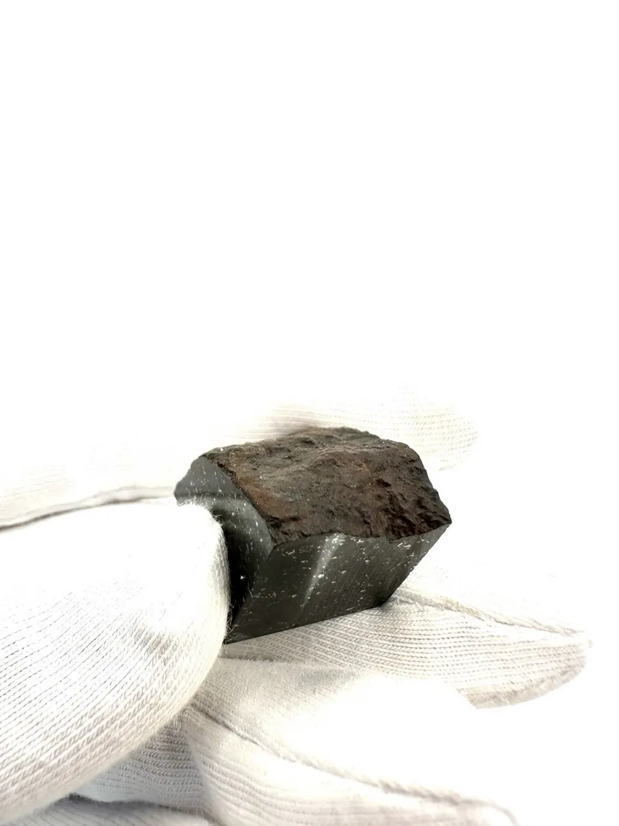 Кора плавления — аутентичная "горбушка" с характерными регмаглиптами (углублениями), образовавшимися при прохождении через земную атмосферу. Это подлинная космическая печать, удостоверяющая внеземное происхождение.